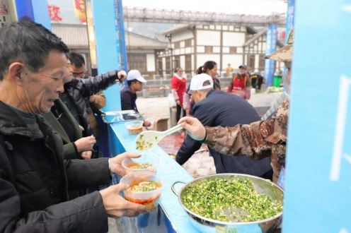 在糧倉廣場,組委會準備的3000碗免費羊肉粉被游客一搶而空。本地生產的米粉,搭配合馬鎮獨特烹飪工藝精制的黔北麻羊肉,再澆上大火熬制的羊骨高湯,最后佐以香菜,熱氣騰騰的羊肉粉讓在場的每一位食客贊不絕口。