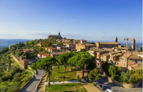 蒙塔希諾鎮(zhèn)位于托斯卡納首府佛羅倫薩(Florence)以南約120公里,坐落在風光迤邐的山丘上。小鎮(zhèn)起伏的群山、廣闊的森林、遍布的石筑歷史建筑以及迷人的鄉(xiāng)村風光吸引著絡繹不絕的游人前來觀光,此地也于2004年被聯(lián)合國教科文組織(UNESCO)列入了世界遺產(chǎn)名錄(World Heritage Sites)。經(jīng)考古發(fā)現(xiàn),早在兩千多年前的伊特魯里亞時期(Etruscan Age),這里就已經(jīng)開始釀制葡萄酒,釀酒歷史十分悠久。