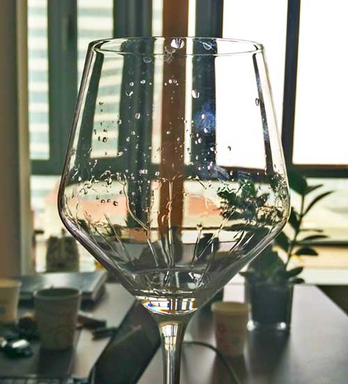 一般認為,52度是濃香型白酒的最佳度數,酒杯中的殘酒經過近兩個小時靜置,香氣依舊突出,而且酒體開始逐漸失去光澤,這是由酒體中豐富的酯類物質隨著酒精的揮發而析出造成的——這也是判斷高度純糧酒的方法之一,和“加水法”測試純糧酒造成的失光是一樣的道理。