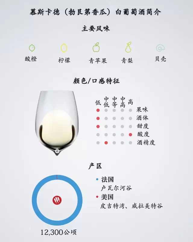 2、一張圖簡單介紹慕斯卡德白葡萄酒