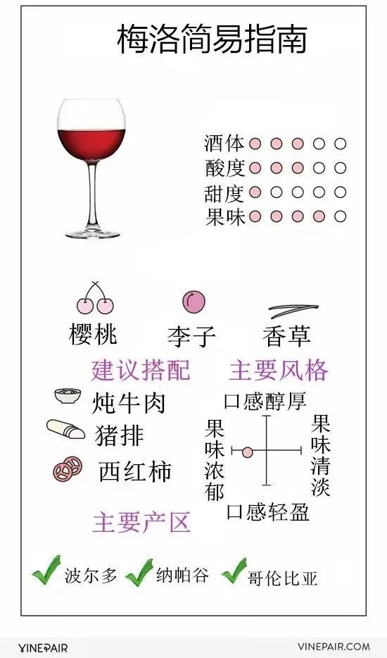 談到紅葡萄品種,許多人會第一時間想到赤霞珠(Cabernet Sauvignon)與梅洛(Merlot)這兩大主力品種。在知名度上,赤霞珠稍勝一籌,但梅洛的風采也不容小覷。今天,我們就通過一張圖來認識梅洛。