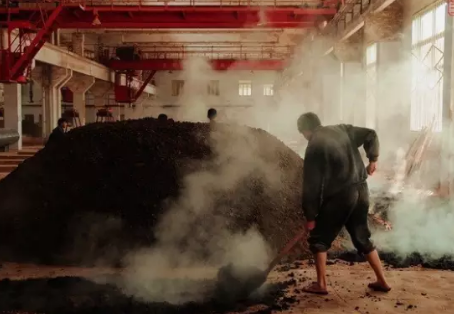 每年端午后,仁懷酒師們就開始制造曲藥。曲藥以小麥為原料,先將小麥粉碎,加入水和“母曲”攪拌,放在木盒子里,工人站在盒子里用腳不停地踩。制曲時間在夏天,制曲車間里的溫度經常高達40攝氏度。高溫有利于微生物的生長,這些微生物混入曲塊中分泌出大量的酶,可以加速淀粉、蛋白質等轉化為糖分。