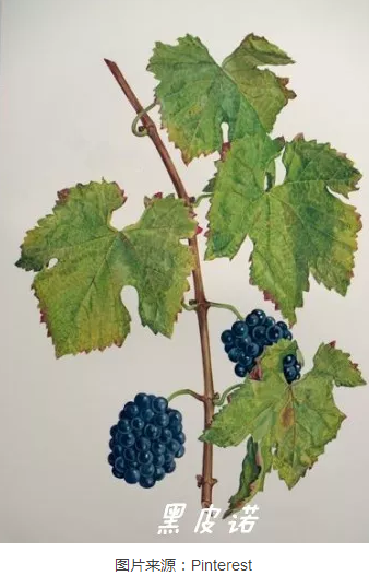 基因變異在動(dòng)物界和植物界都非常常見(jiàn),皮諾家族的葡萄品種也是基因變異而來(lái)的,比如黑皮諾、白皮諾以及灰皮諾。這幾個(gè)葡萄的最大區(qū)別是顏色深淺不同。黑皮諾所含的活性花青素(Active Anthocyanins)最多,因此果皮顏色最深濃;白皮諾由黑皮諾變異而來(lái),所含活性花青素最少,因此顏色最淺;灰皮諾的活性花青素含量在黑皮諾和白皮諾之間,約處于居中水平。