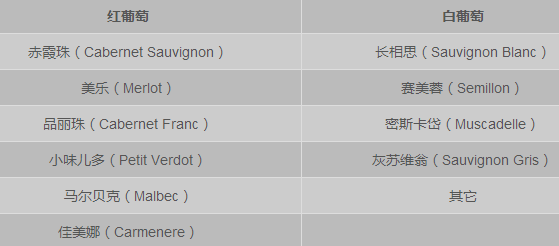 在波爾多地區,法定的葡萄品種有以下幾個主要品種: