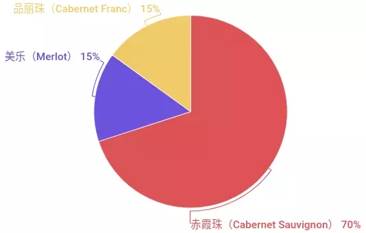 典型的波爾多左岸葡萄酒以70%的赤霞珠、15%的品麗珠和15%的美樂混釀而成(小味兒多的比例通常低于2%)。
