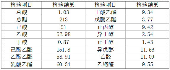 我們對研制的46%vol“贏杯傳奇”淡雅型白酒進行檢測,結果如下;單位mg/100ml