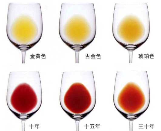 當(dāng)然,透過葡萄酒的外觀,你也可以從中了解到此酒的陳年時間。葡萄酒的陳年時間越長,其顏色就越靠近棕色,這也是葡萄酒氧化的標(biāo)志。陳年時間較長的白葡萄酒偏向呈琥珀色、黃色或金色,而陳年時間較長的紅葡萄酒顏色會呈紅褐色或磚紅色。