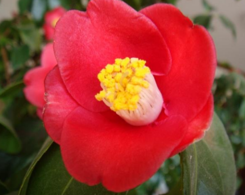 茶花,又名山茶花,花瓣為碗形,分單瓣或重瓣,單瓣茶花多為原始花種,重瓣茶花為延續花種,花瓣可多達60片。植株形姿優美,葉為濃綠綠而光澤,花形艷麗繽紛,受到世界園藝界的珍視。茶花的品種極多,是中國傳統的觀賞花卉,“十大名花”中排名第八,亦是世界名貴花木之一。原產于中國東部,在長江流域、珠江流域、重慶、云南和四川各地,朝鮮、日本、中國臺灣和印度等地普遍種植。
