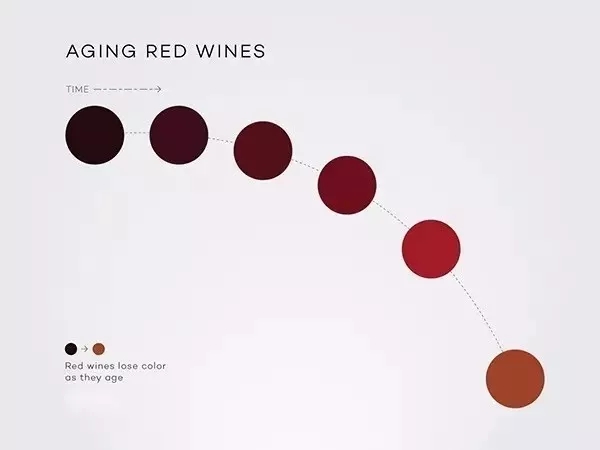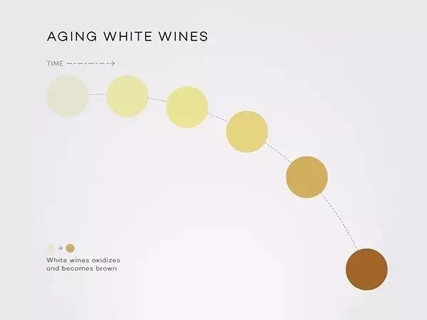 白葡萄酒在存放過程中,隨著時間的推移會逐漸失去淡綠的色澤,向金黃色琥珀色發(fā)展,如果出現(xiàn)棕色就是開始氧化的征兆。