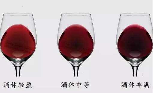 酒體輕盈的葡萄酒通常給人一種“清瘦”的感覺(jué),接近于水給人的感覺(jué);而酒體豐滿(mǎn)的葡萄酒通常會(huì)更為厚重和濃郁,更接近于牛奶給人的感覺(jué);至于酒體中等的葡萄酒則介于兩者之間,有些像水果流下的汁液。