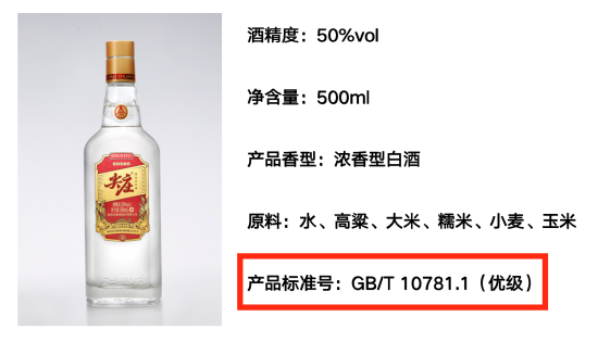尖莊酒的標(biāo)簽上注明了產(chǎn)品標(biāo)準(zhǔn)號——GB/T10781.1,這就代表了尖莊酒是采用固態(tài)發(fā)酵工藝釀造的濃香型純糧白酒。而固態(tài)法白酒的標(biāo)準(zhǔn)代號還有兩種,代表清香型的GB/T10781.2和代表醬香型的GB/T 26760。
