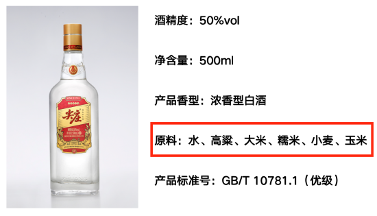 再看尖莊酒的配料表,除了水之外,只有大米,糯米,高粱,小麥、玉米五種原料,這就代表尖莊酒是妥妥的純糧釀造固態(tài)法白酒,因為如果有額外的添加劑成分,都是需要寫明的。