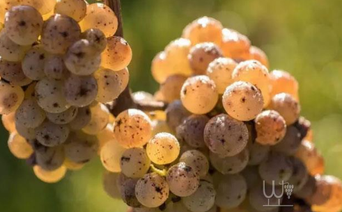 雖說遲摘葡萄不需要貴腐菌的幫助就可以濃縮糖分,但是有相當(dāng)一部分的葡萄在延遲采摘的過程中會受到貴腐菌的影響,也正是因為如此,貴腐葡萄酒(Noble Rot Wine)亦算是遲摘葡萄酒的一份子。