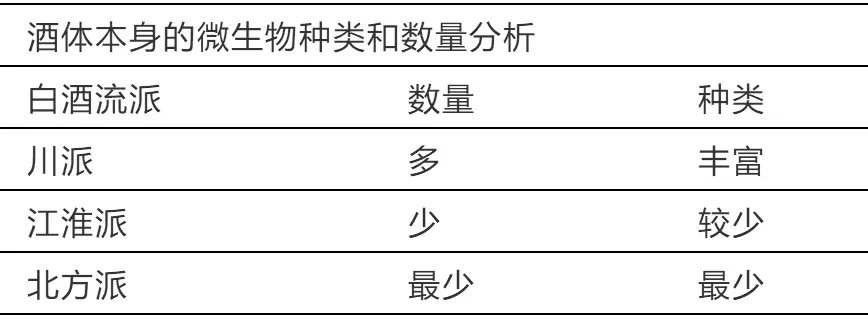環境條件的差異,帶來環境中微生物種類和數量的差異,所以長江流域的四川盆地濃香型白酒產區微生物豐富,釀造的白酒香氣濃郁,形成了濃郁的川派;江淮流域環境微生物種類、數量相對較少,生產出的濃香型淡雅綿柔,形成淡雅的江淮派;北方區域由于最少的微生物種類和數量,釀成的濃香型白酒風味相對最爽凈,只是注重傳統濃香窖泥的作用,北方派形成了強于江淮派的窖香。