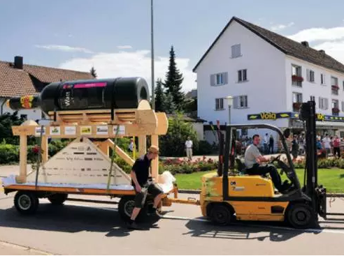 根據(jù)吉尼斯世界紀錄官網(wǎng)的記載,目前世界上有記錄的最大瓶葡萄酒來自瑞士的OK Watterfäscht酒廠,這瓶巨大的葡萄酒有容積足足有2020升,里面被裝滿了由Pinot Noir和Dornfelder兩種葡萄釀制的被稱為Watter-Wein的混釀葡萄酒。