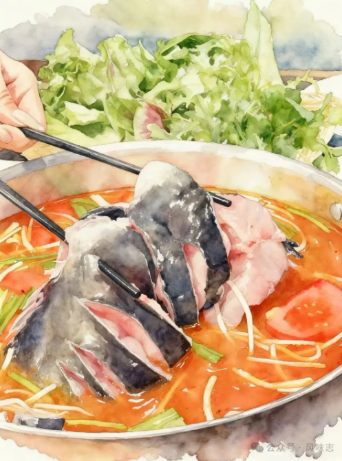 貴州的“酸湯火鍋”,用米湯或番茄自然發酵成酸湯,涮魚、菌子、野菜。高原濕冷,酸味開胃驅寒,而本地盛產的野生菌與淡水魚,則成了鍋中主角。工作原因經常出差貴州,在遵義吃過最好的“木瓜酸湯魚”,酸香撲鼻,魚肉嫩滑,一碗湯下肚,寒氣盡散。