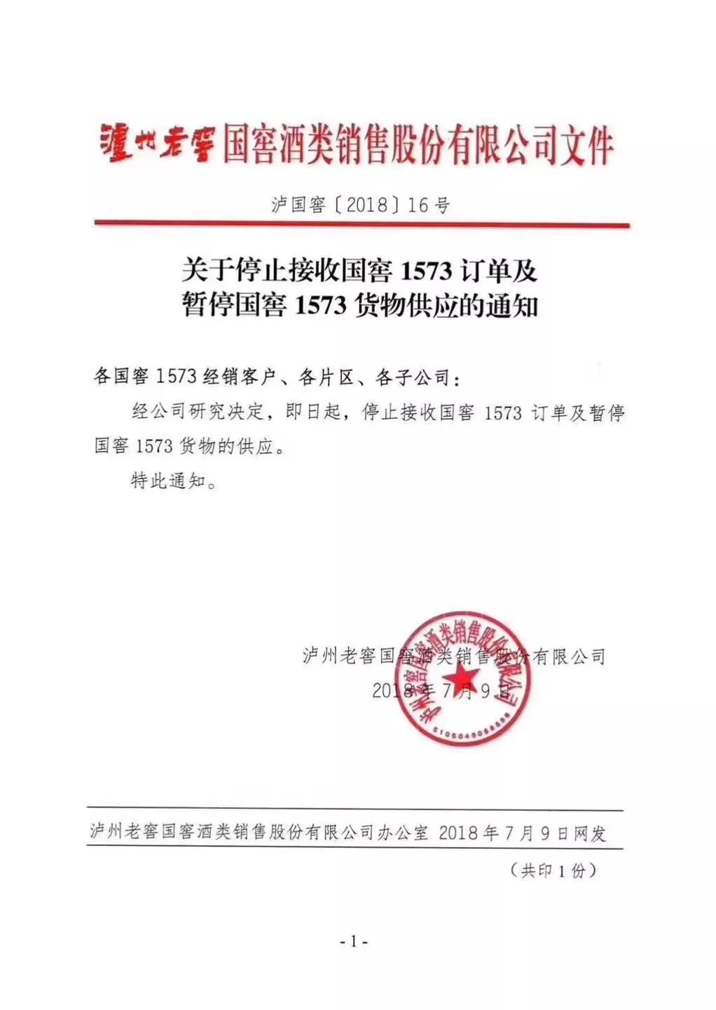 瀘州老窖7月9日下發關于國窖1573暫停接收訂單和發貨的通知。對于此舉,瀘州老窖沒有進一步說明意圖是什么,老田用幾個關鍵詞進行解讀和猜想。