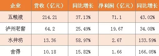 但從半年報的整體數據來看,以五糧液、瀘州老窖領軍的川酒軍團的表現無疑引人矚目。從規模而言,4家上市川酒企業,半年總營業收入達到301.95億元;從利潤而言,舍得利潤增長高達166.05%,僅次于因股權變動而呈現高利潤增長的老白干,川酒軍團全部進入行業利潤率前十。