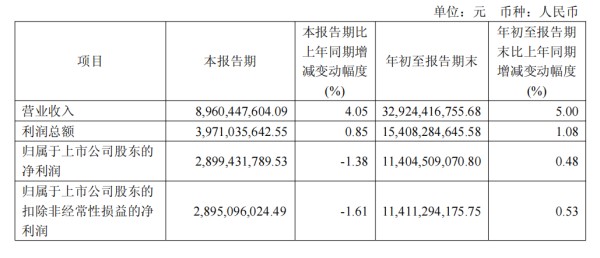10月30日,山西汾酒2025年前三季度業(yè)績報告正式發(fā)布。數(shù)據(jù)顯示,汾酒前三季度實現(xiàn)營業(yè)收入329.24億元,同比增長5.00%,歸屬于上市公司股東的凈利潤為114.05億元,同比增長0.48%;第三季度實現(xiàn)營業(yè)收入89.60億元,同比增長4.05%。