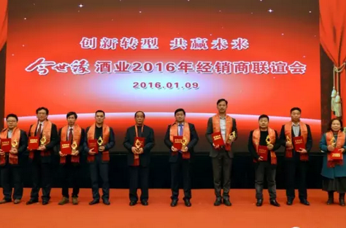 2016年1月9日,今世緣酒業在公司總部召開了以“創新轉型,共贏未來”為主題的經銷商聯誼會。周素明董事長就“十二五”期間今世緣發展情況作了簡要回顧,剖析了“十三五”面臨的形勢,并就強化廠商合作提出了意見。