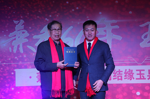 玉泉酒業董事長楊立友代表企業向高老獻上600斤限量版大師封壇酒,寓意高老與玉泉的緣分天長地久,也祝愿白酒行業的這位老壽星福壽綿長。黑龍江省畫院教育學院院長青年畫家閆景陽向高老獻上畫作一幅,祝福老人家耄耋常樂,松柏長青。