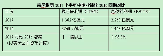 公告顯示,集團的上半年中期業績未扣除實際成本稅后法定凈利潤(NPAT)為1.362億澳元,每股收益為18.5仙澳元,相對去年同期業績增長達一倍以上。集團扣除利息前的收益(EBITS)增長至2.268億澳元,以實際公布貨幣計算增長了58.8%。