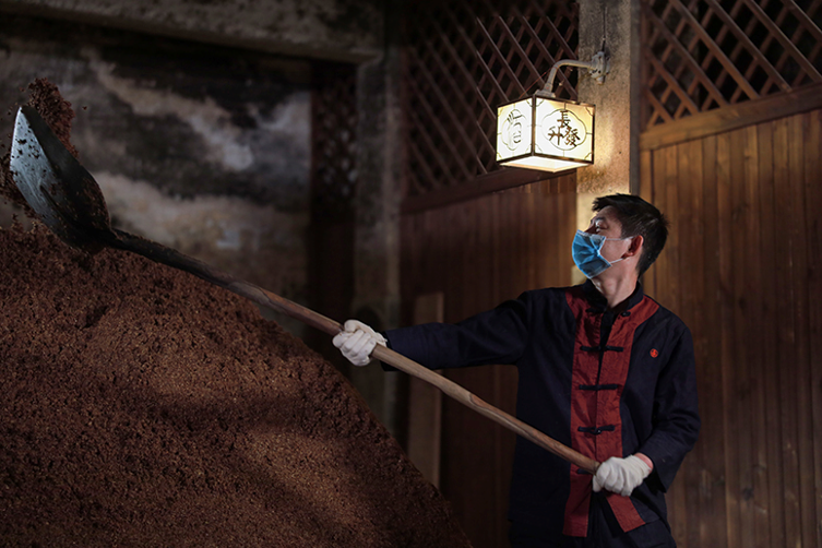 501車(chē)間釀酒工人在維護(hù)窖池