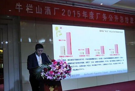 2月19日,牛欄山酒廠在新廠區(qū)職工之家會議室召開了2015年度廠務(wù)公開總結(jié)表彰大會。大會全面回顧和總結(jié)了2015年及“三五”期間企業(yè)工作,表彰了先進(jìn)集體和個人,提出了企業(yè)“四五”期間戰(zhàn)略構(gòu)想,重點部署了企業(yè)2016年的任務(wù)和目標(biāo)。企業(yè)領(lǐng)導(dǎo)班子、中層干部、獲得表彰的先進(jìn)集體代表、個人及職工代表等200余人參加了大會。