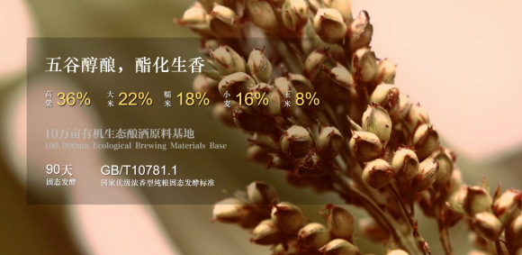 純糧釀。小麥孕育出優質的微生物群,大米協助低溫緩慢發酵,高粱賦予豐富的單寧,玉米和糯米帶來醇厚凈爽的靈動口感;相比普通白酒45-60天的發酵時間,延長至90天讓糖化、醇化、酯化更充分,風味物質更豐富,同時減少上頭物質的產生。