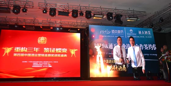 3月22日下午,“重構三年 鑒證蝶變”第四屆中國酒業營銷金爵獎頒獎盛典在成都大鼎戴斯酒店隆重舉行,1919酒類直供榮獲了本屆金爵獎“中國酒業重構期先鋒酒商”稱號。