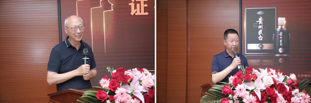 在會議頒獎環(huán)節(jié),仁懷市酒業(yè)協(xié)會常務(wù)副會長、秘書長 劉幫濤發(fā)表了熱情洋溢的演講,充分肯定了民臺酒業(yè)在傳承與發(fā)揚釀酒傳統(tǒng)技藝,推廣地方特色,促進(jìn)地方經(jīng)濟(jì)發(fā)展方面作出的突出貢獻(xiàn)。隨后,在莊重的氛圍中,由仁懷市酒業(yè)協(xié)會副秘書長 楊必剛、仁懷市酒業(yè)協(xié)會副秘書長 張小波進(jìn)行了頒獎儀式,為參與民臺酒業(yè)兩款經(jīng)典醬酒頒發(fā)品鑒證書。