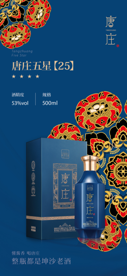 值得一提的是,唐莊一直堅持以傳承千年的釀酒古法工藝釀造醬酒,唐莊五星酒便是嚴格按照傳統坤沙工藝釀制而成的優質醬酒。坤沙工藝作為醬酒釀造工藝中的頂級工藝,生產周期長達1年,釀造過程極為復雜。同時釀造的新酒還需要經過時光的窖藏,還須存儲三年以上才能用來制作醬酒,而勾調好的成品酒還需要一年陳釀時間方可出廠,從開始釀造到出廠的時間至少需要五年。在醬香酒存儲陳化的過程中,讓酒自由地呼吸、醇化、老熟,成長為更優質的美酒,由此造就了唐莊五星酒的品質極佳。