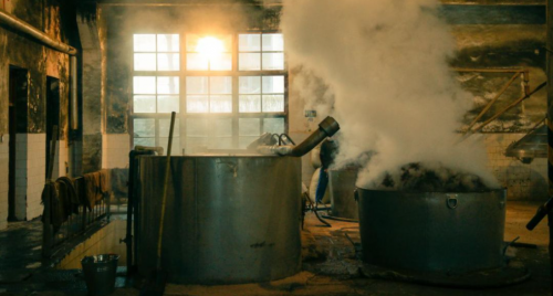 在蒸煮步驟上,禧大福酒的釀造工藝也凸顯著其繁復的特點。頭兩次投糧經過兩次蒸煮,但不取酒,只為增加發酵時間,裹挾更多微生物。第三次蒸煮開始,時間為臘月到次年正月,剩下的7次蒸煮都會取酒,一直到次年農歷九月份蒸煮過程才完成。在九次蒸煮中,揮發性強、低熔點的物質都會被排除,只留下不易揮發的高沸點香味物質。