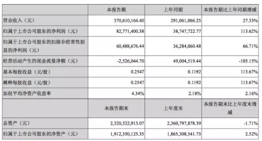 2017年上半年,酒鬼酒經營業績實現大幅增長。實現營業收入3.71億元,較上年同期增長27.33%,其中酒類銷售收入3.70億元,較上年同期增長28.15%。實現歸屬于上市公司股東的凈利潤0.83億元,較上年同期增長113.62%。