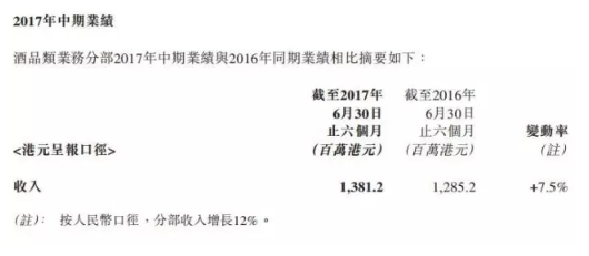 其中酒品類業(yè)務增長突出,同期業(yè)績達到13.812億港幣,按港幣計算增幅7.5%,按人民幣計算增長12%。酒品類利潤為4.18973億港幣,去年同期僅為1.10985港幣,增長約277.7%。