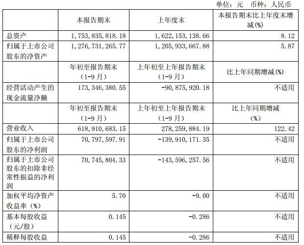 2015 年1-9月,四川水井坊股份有限公司實現營業收入 6.19億元,同比增加 122.42%;歸屬于上市公司股東的凈利潤 7079.76萬元,去年同期虧損1.40億元;基本每股收益 0.145元。