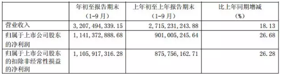 10月29日,口子窖披露了三季報業績。報告顯示,前三季度口子窖實現營收32.07億元,同比增長18.13%,歸屬上市公司股東凈利潤11.41億元,同比增長26.68%。
