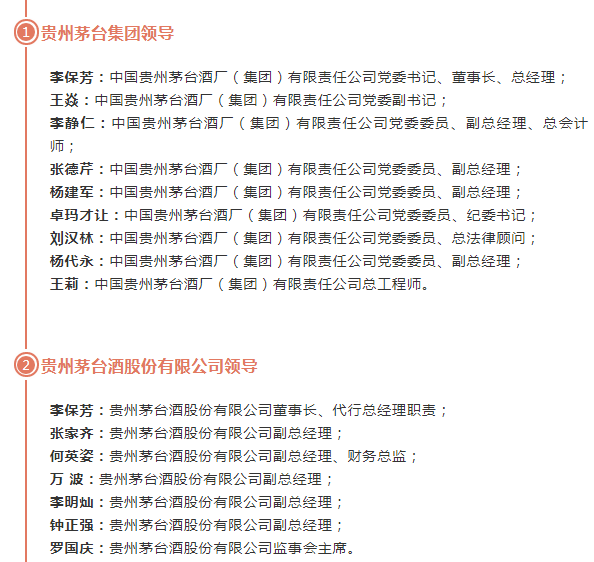 至此,茅臺集團與茅臺酒股份公司目前基本的領導序列如下(來自集團與股份官網):