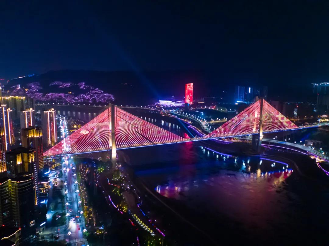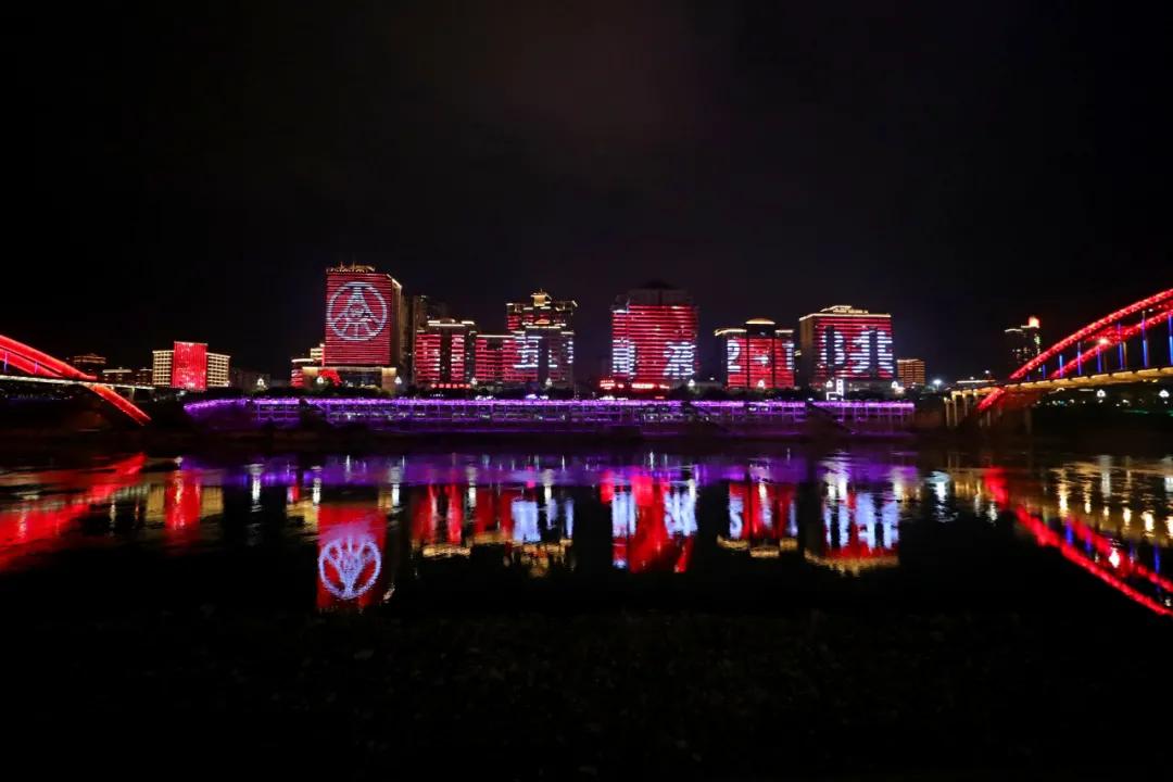 從五糧液產業園區各核心區域,到五糧液機場、宜賓高鐵站、高速南北站等市區門戶口岸,長江大橋、岷江大橋、中壩大橋、南門大橋等城市樞紐,五糧液路、蜀南大道等交通大動脈,道旗林立、流光溢彩。圍繞“酒都宜賓 香醉世界”和“新時代 新征程 新作為”兩大主題,以中華文化、酒文化、五糧液文化為內核,體現“社會和美”“文化和美”“生態和美”理念的精美裝置和亮化景觀妝點著五糧液園區和酒都城區。