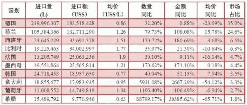 大部分進口啤酒價格仍在下降。德國、比利時、法國、意大利、葡萄牙、希臘等國的進口啤酒均價同比下降,其中均價降幅最大的是希臘啤酒,為65.71%,其次為意大利啤酒,降幅為54.12%,德國啤酒均價同比下降23.69%。