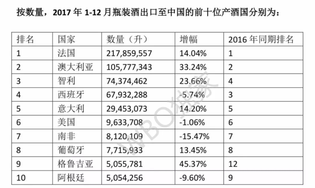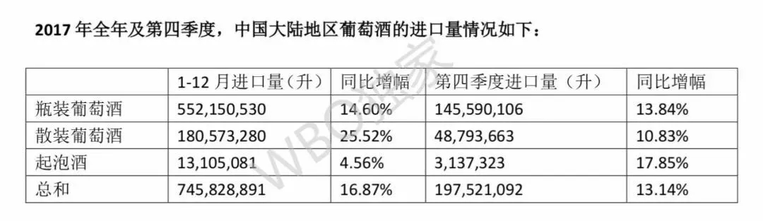 WBO剛剛獲得如下2017年1-12月的葡萄酒最新進口數據。