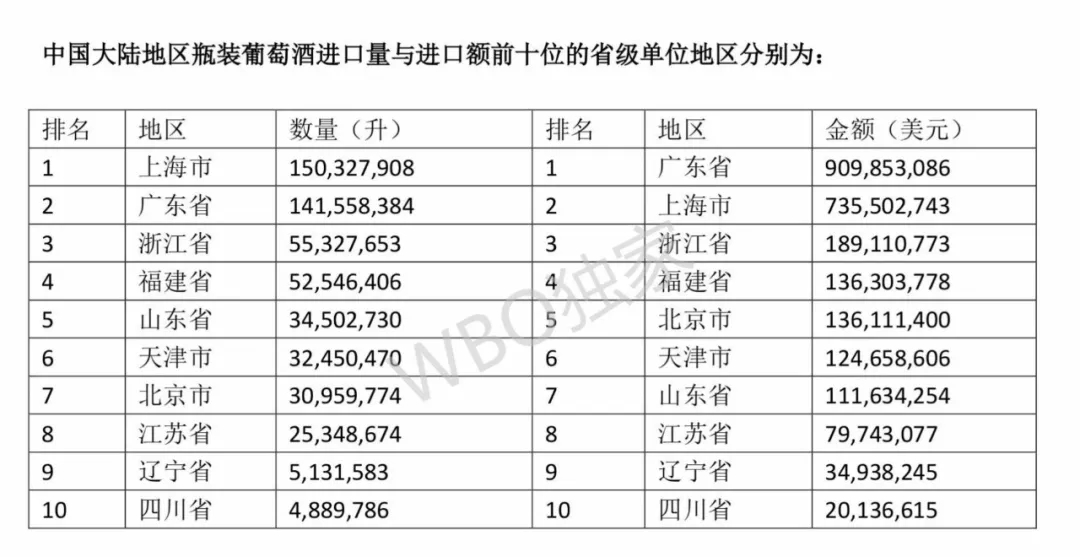 與2016年的名次變化不大。盡管上海市仍是中國(guó)葡萄酒進(jìn)口量最大的省級(jí)單位,進(jìn)口量略高于廣東省。但廣東省的進(jìn)口額遠(yuǎn)超上海,排名第一。這在于廣東毗鄰港澳,是名莊酒、精品酒的重要入口。