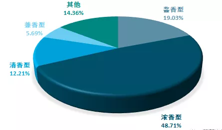 從分香型的消費量結構來看,我國的白酒消費以濃香型為主,其次是醬香型與清香型,其中醬香型主要是高端白酒,消費量占比相對較小,但市場規模占比相對較大。