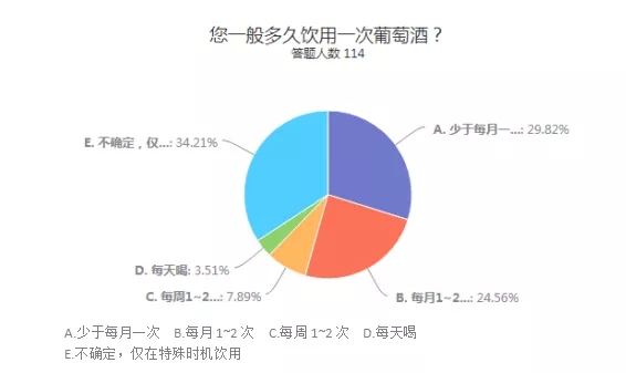 對90后消費者來說,目前仍未養成固定的飲用習慣,酒類消費更多處于體驗階段。其中,飲用頻次在每日一次以及在每周2~3次的僅為11%左右,高達34%的人僅在特殊時機飲用,另外還有近30%的人飲用頻次低于每月一次。由此可見,葡萄酒年輕消費市場仍有巨大的可挖掘空間,企業仍需繼續加強對年輕消費者的培育工作。