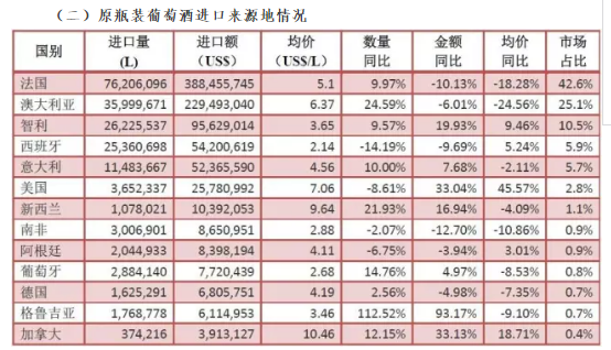 (二)原瓶裝葡萄酒進口來源地情況