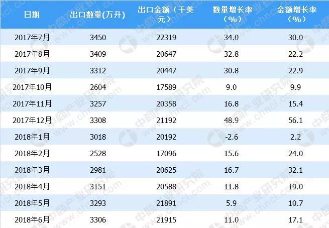 2017年7月-2018年6月中國啤酒出口情況一覽表