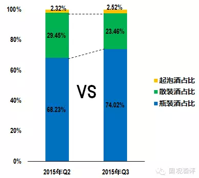 而瓶裝酒始終維持增長(zhǎng)趨勢(shì),三季度進(jìn)口量同比增長(zhǎng)約45%,環(huán)比增長(zhǎng)21%;市場(chǎng)占比繼續(xù)回升,目前占比74%。