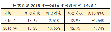 注:迎駕貢酒高檔為其年報中A類產品,低檔為其B類產品。