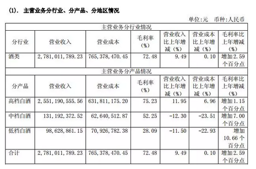 其中,亳州古井銷售有限公司實現55.23億元,武漢天龍黃鶴樓酒業有限公司并購后實現3.55億元,安徽龍瑞玻璃有限公司實現2.04億元,上海古井金豪酒店管理有限公司實現0.77億元。