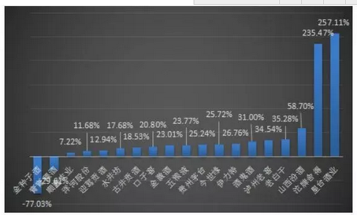 在正增長(zhǎng)的企業(yè)當(dāng)中,皇臺(tái)酒業(yè)以257.11%的增速位列榜首(第一季度其凈利潤(rùn)為虧損1300余萬(wàn))。除皇臺(tái)而外,沱牌舍得以235.47%的增速位列第二位。山西汾酒和老白干分列三四位。值得注意的是,老白干作為“低檔”產(chǎn)品,能取得35.28%的增長(zhǎng)實(shí)在難得。